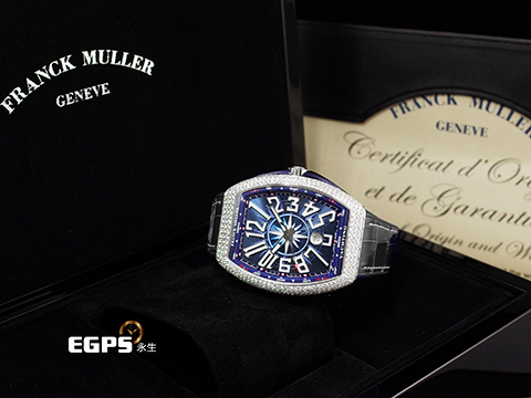 Franck Muller 法蘭穆勒 FM Vanguard Yachting V45 SC DT 遊艇 藍色面盤 精鑲鑽框 自動上鏈 44x54 mm