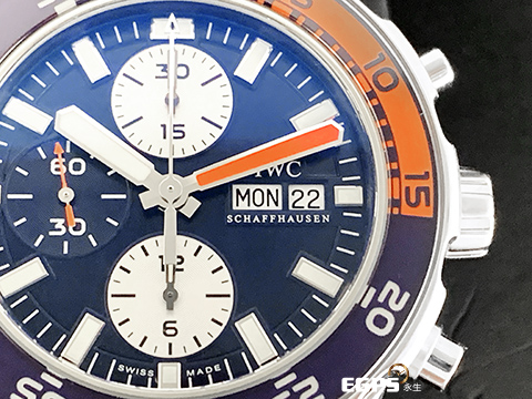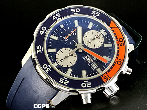 | IWC 萬國錶 Aquatimer 海洋時計 潛水錶 計時碼錶 藍橘色外框 IW376704 橡膠帶款 自動上鍊 44mm |