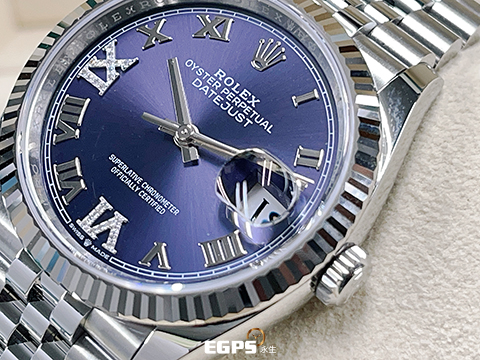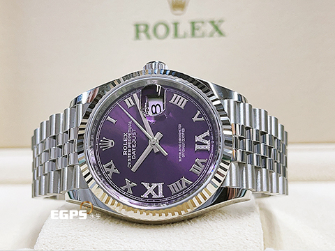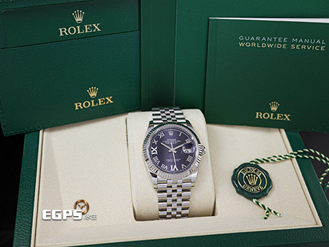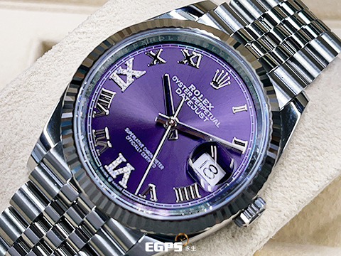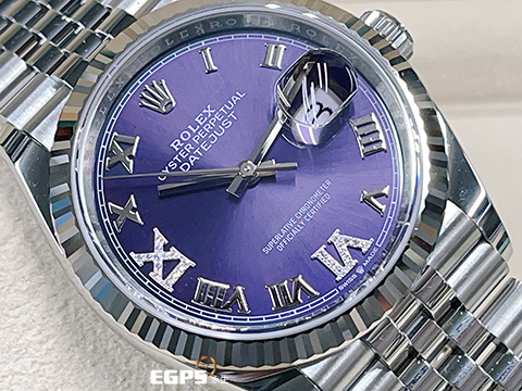 ROLEX 勞力士 Datejust 36 蠔式日誌型 126234 原廠VI、IX鑲鑽時標 茄紫色面盤 不鏽鋼 DJ36 經典三角坑紋錶圈 2025年保卡 紀念型(Jubilee)五銖錶帶 自動上鍊 36mm
