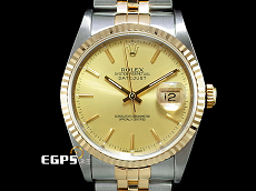 | ROLEX 勞力士 DATEJUST DJ 16233 蠔式恆動 18K黃金材質 半金款 原裝金色面盤 柱狀時標 自動上鍊 36mm |