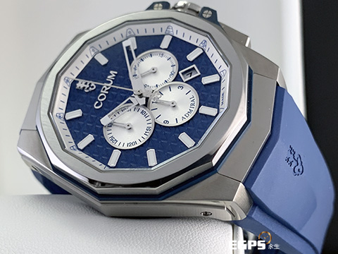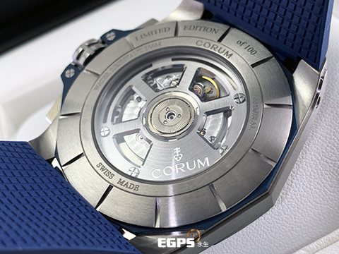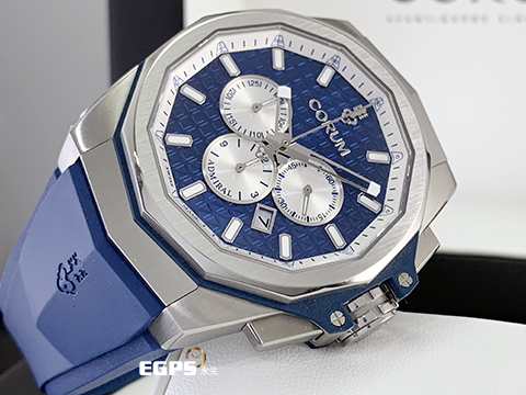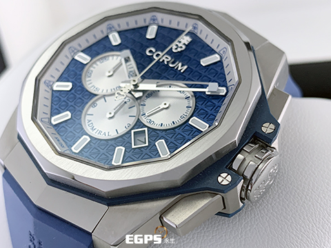 CORUM 崑崙 Admiral's Cup 海軍上將 132.211.04/F373 AB51 海洋藍色格紋面盤 Admiral AC-ONE 45 海軍上將 鈦金屬計時款腕錶 2022年保單 獨特全球限量100只 自動上鍊 45mm